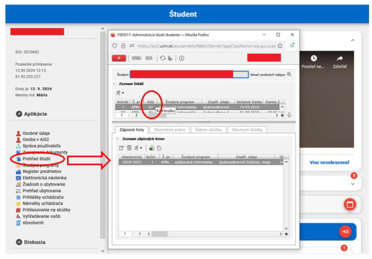 Študenti externej formy sú všetci zaradení do krúžka 01.